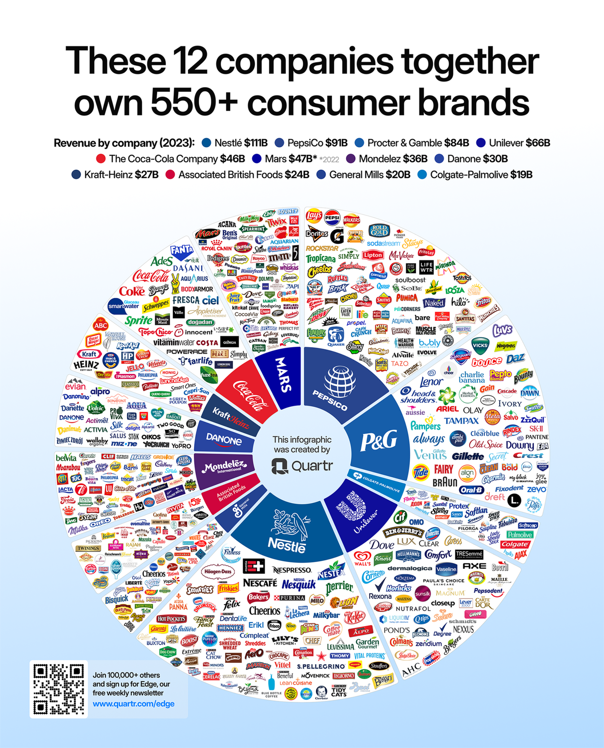 ➞ Під час бренд-аудиту відходів важливо фіксувати саме бренди — Coca‑Cola, Pepsi, Nestlé та інші. За кожним брендом стоїть компанія‑виробник, яка приймає рішення про матеріали упаковки та масштаби виробництва. Один бренд може належати великій корпорації: наприклад, вода Dasani належить The Coca‑Cola Company, яка також виробляє Coca‑Cola, Fanta, Sprite. Тобто, бачачи пластикові пляшки Dasani в природі, ми фактично бачимо вплив великої корпорації.