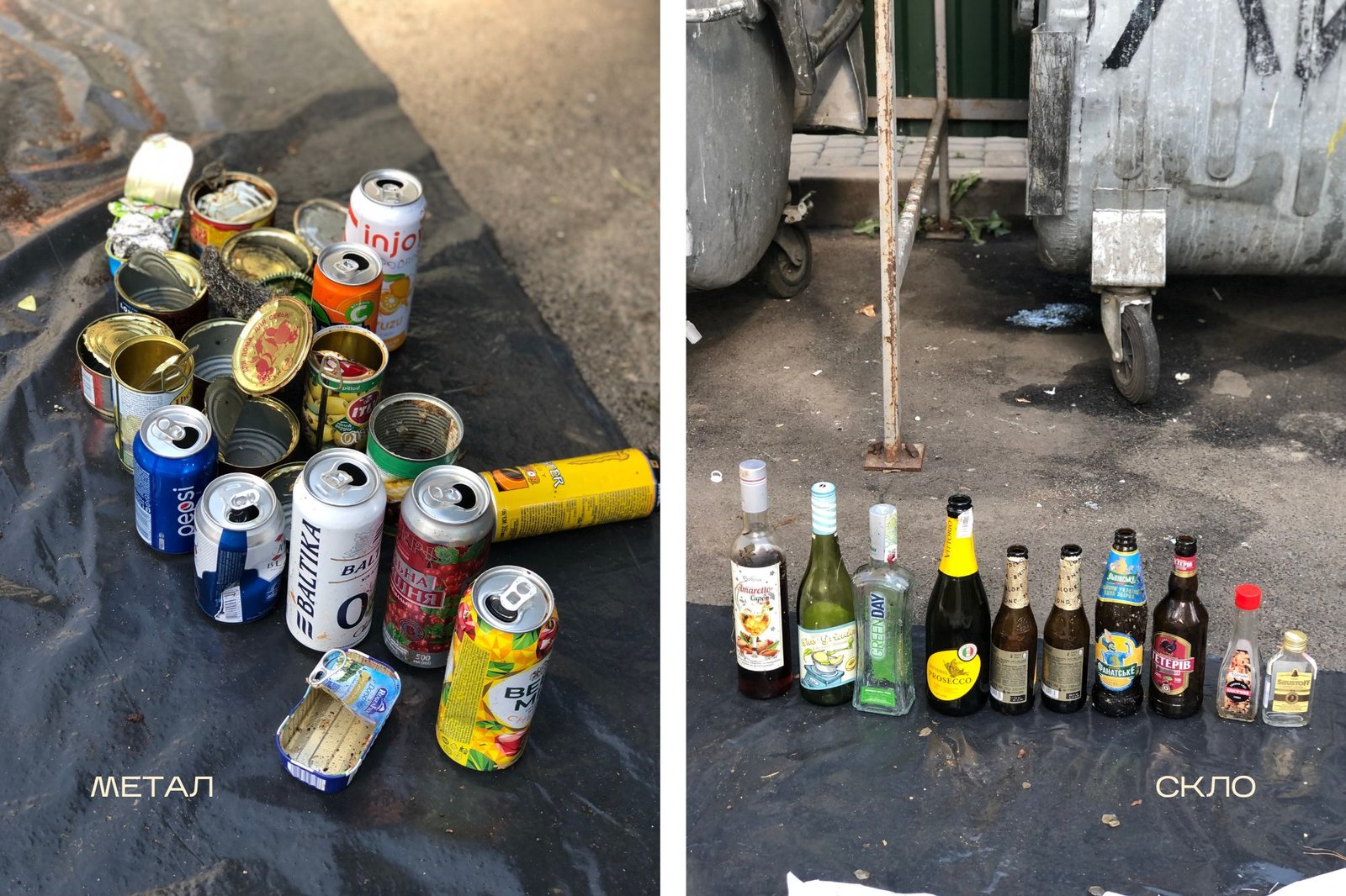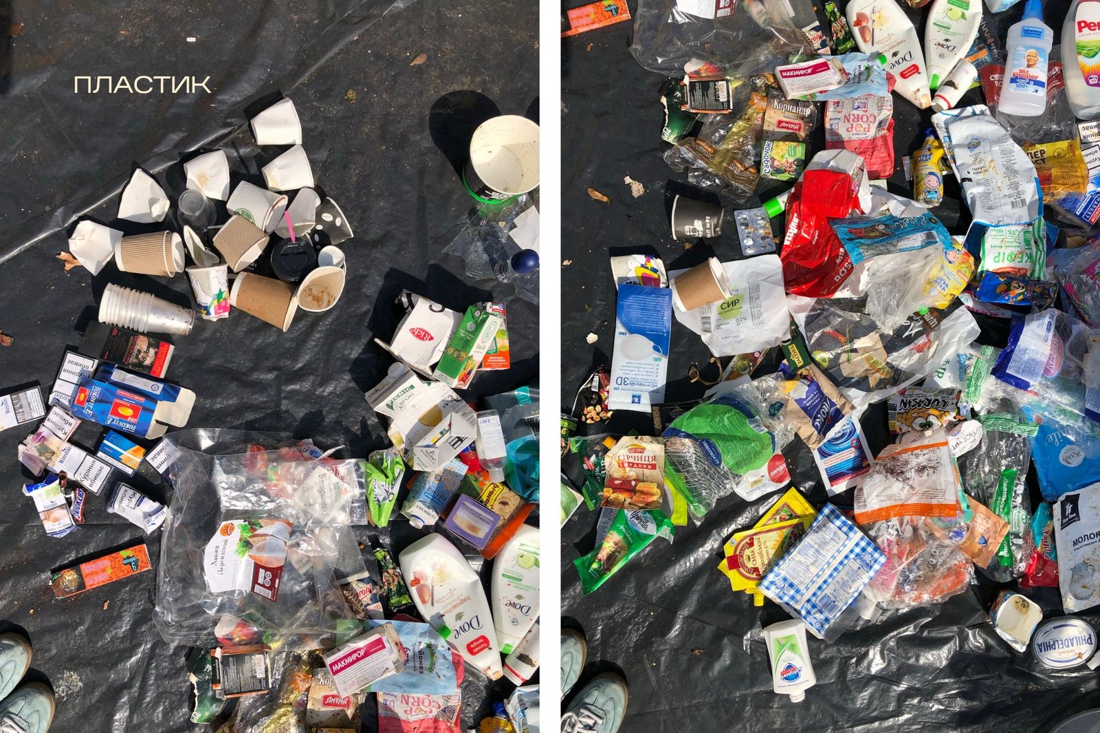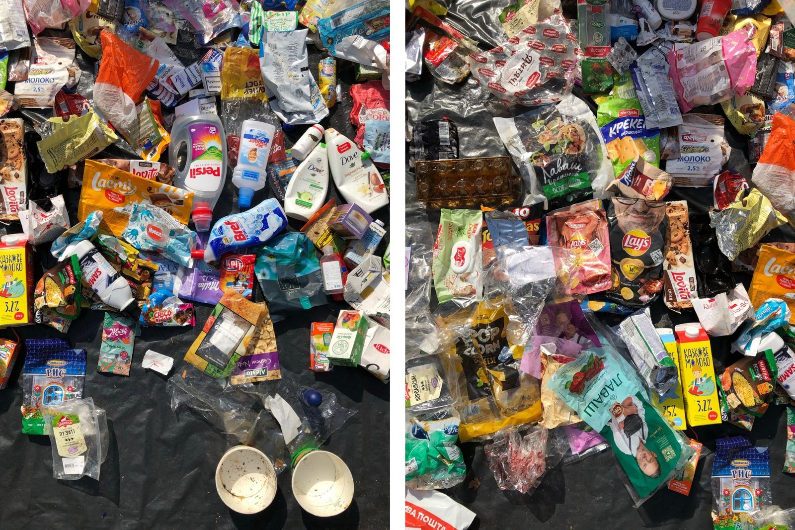 Спершу ми розсортували вміст контейнера за фракціями: папір, органіка, метал, скло, пластик (разом із комбінованою упаковкою), небезпечні відходи та залишкове (тканини, вата, підгузки). Окремо фіксували бренди й тип пакування їхньої продукції — щоб розуміти, хто і як представлений у міському смітті. Після цього зважили кожну категорію, щоб отримати реальне відсоткове співвідношення.